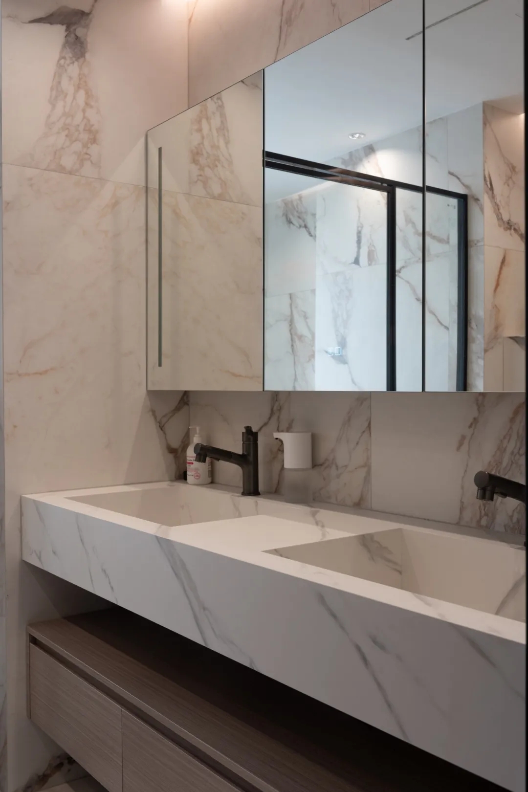 本案以“浪漫為名”,運用現代簡奢的表現手法,通過對材質碰撞之間的獨特思考,在自然的色彩與肌理中尋覓生活意趣,打造一個當代高雅、純粹的氣質私宅。