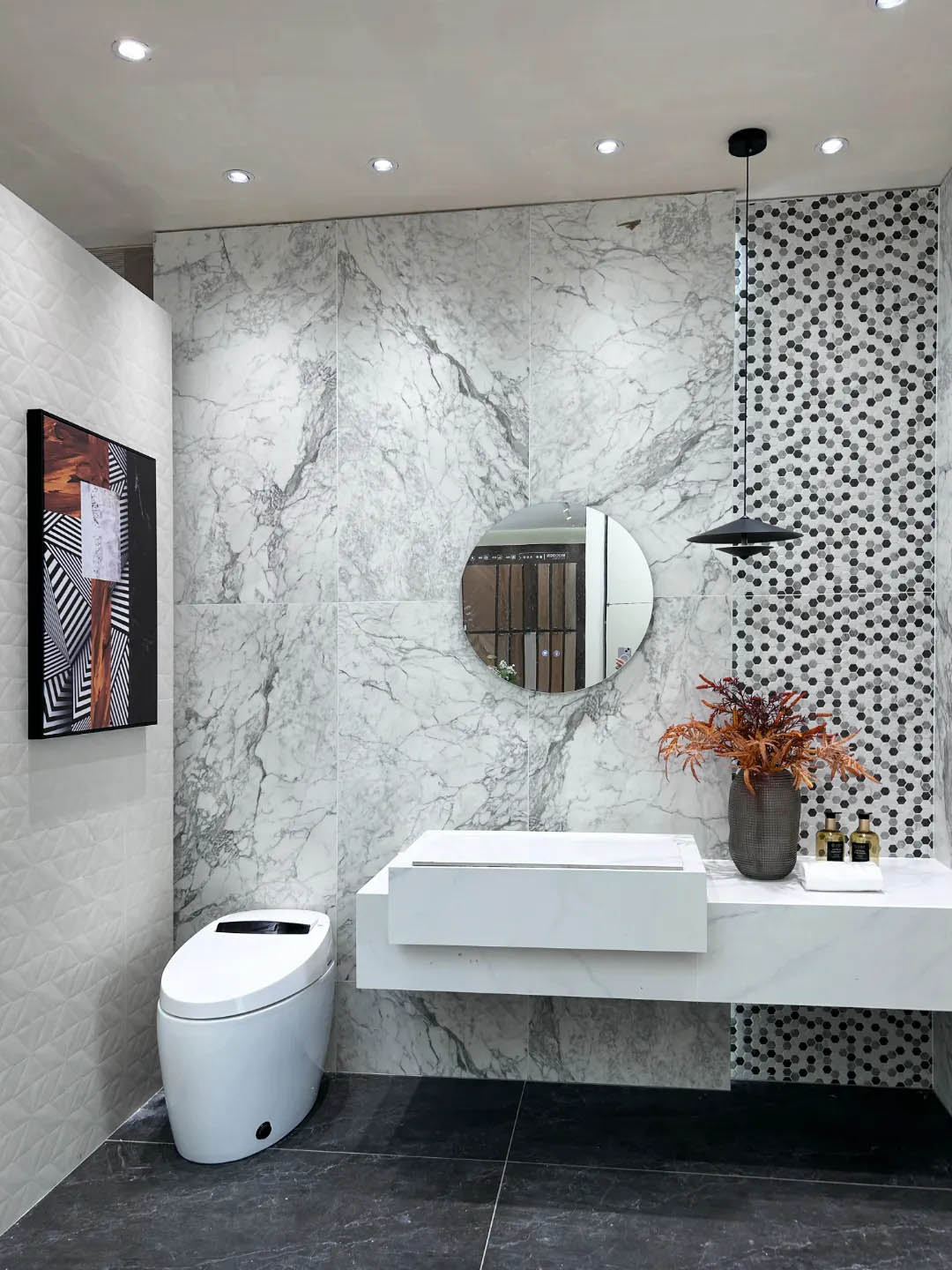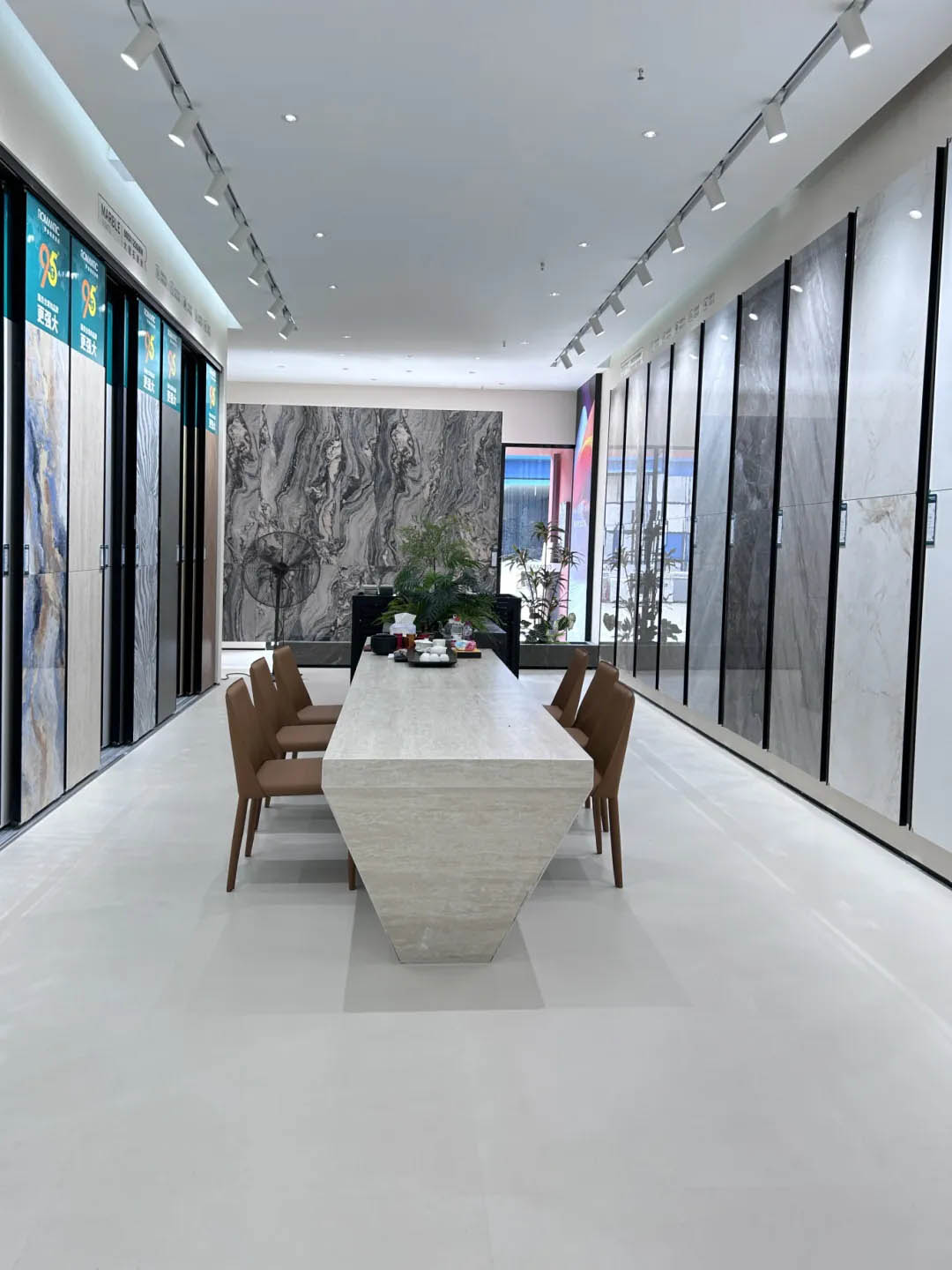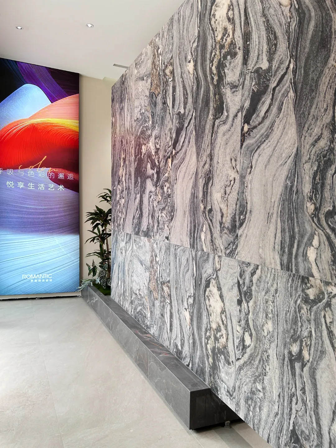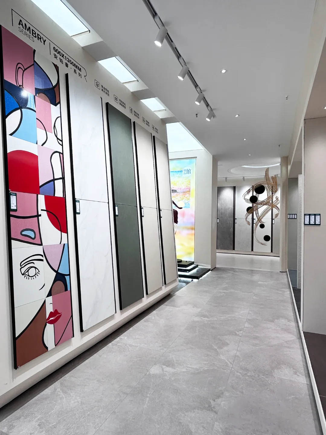 視覺(jué)墻采用900x1800mm翡冷翠彩石,粗曠豪邁的紋理,述說(shuō)著大自然的磅礴之美,與之形成鮮明對(duì)比的是從切面空間到直線的選材區(qū)轉(zhuǎn)變,讓瀏覽動(dòng)線更加豐富。
