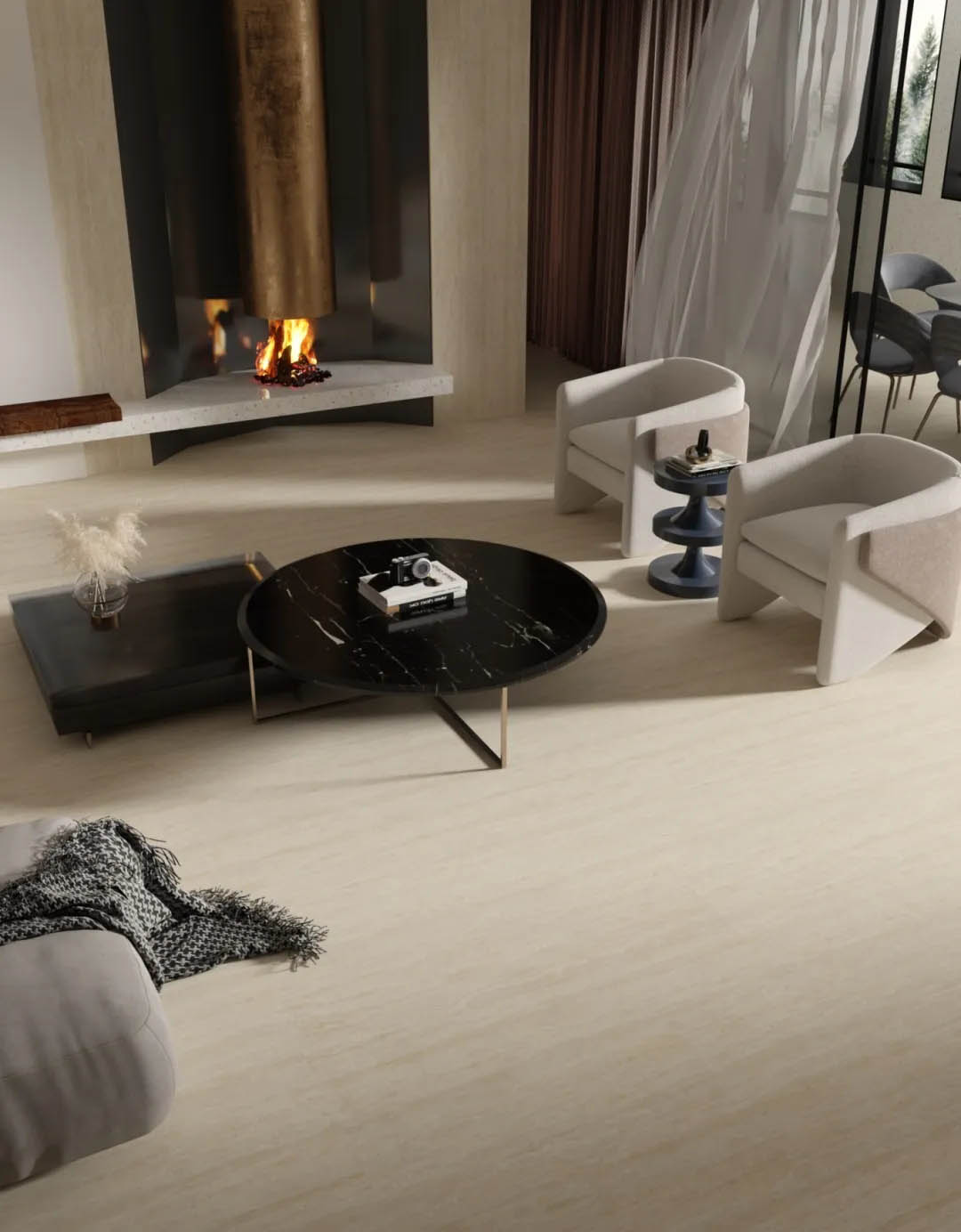 靈感源自意大利米蘭的天然洞石,清冷凜冽的米灰色,層疊錯(cuò)落的豎條紋理肌理,斑駁細(xì)膩的孔洞,流淌著【米蘭洞】歲月靜好的時(shí)光印痕,潤(rùn)澤而豐富的質(zhì)感,讓空間既時(shí)尚又富有歷史感。